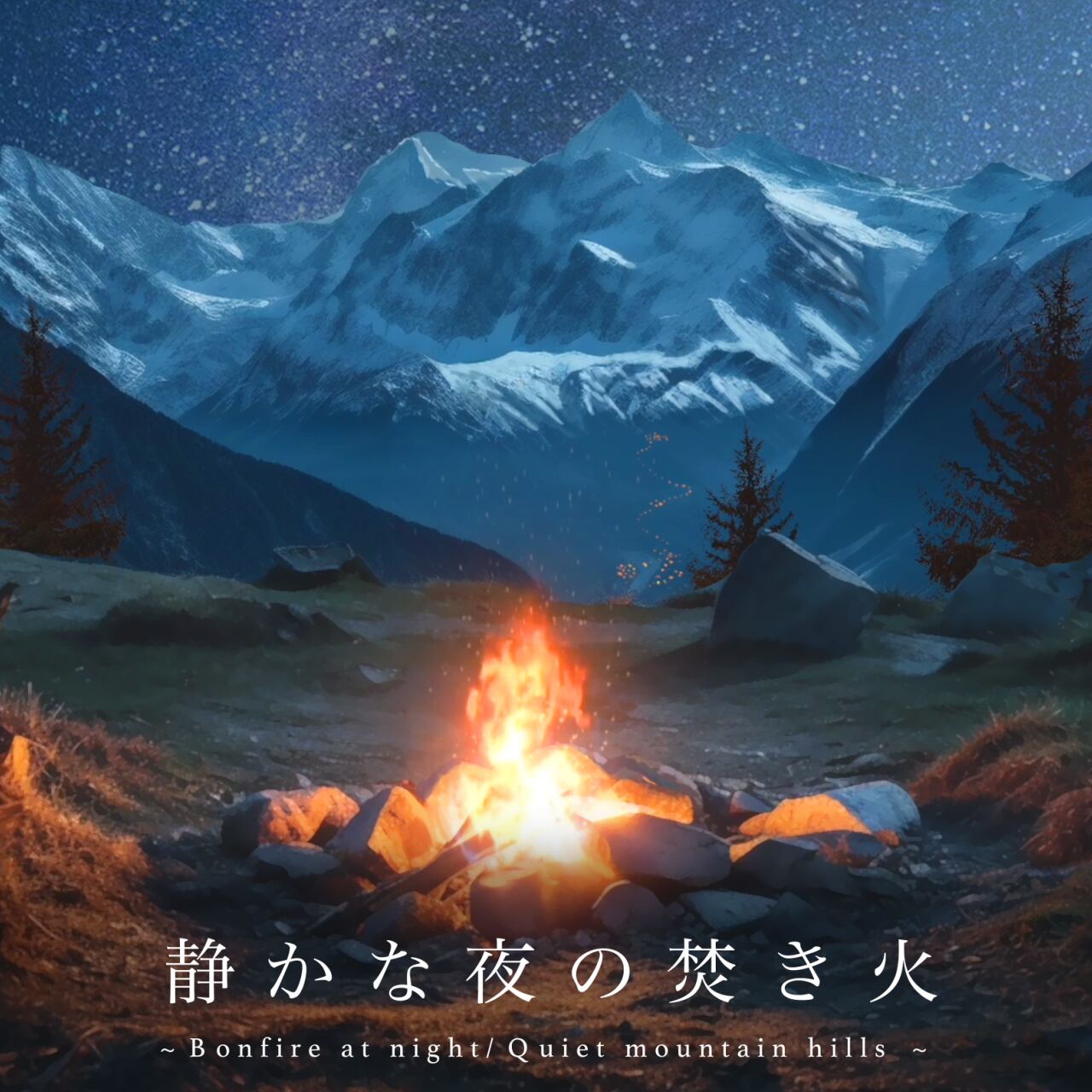 静かなアルプスの丘で一人、焚き火する夜。白い雪が積もった山脈の向こうに満点の星空がゆっくりと昇っていく。空気の澄んだ静かな丘に一人腰を下ろし、薪をくべる。小枝に種火を移すと大きな炎となって、火の粉が宙に舞った。